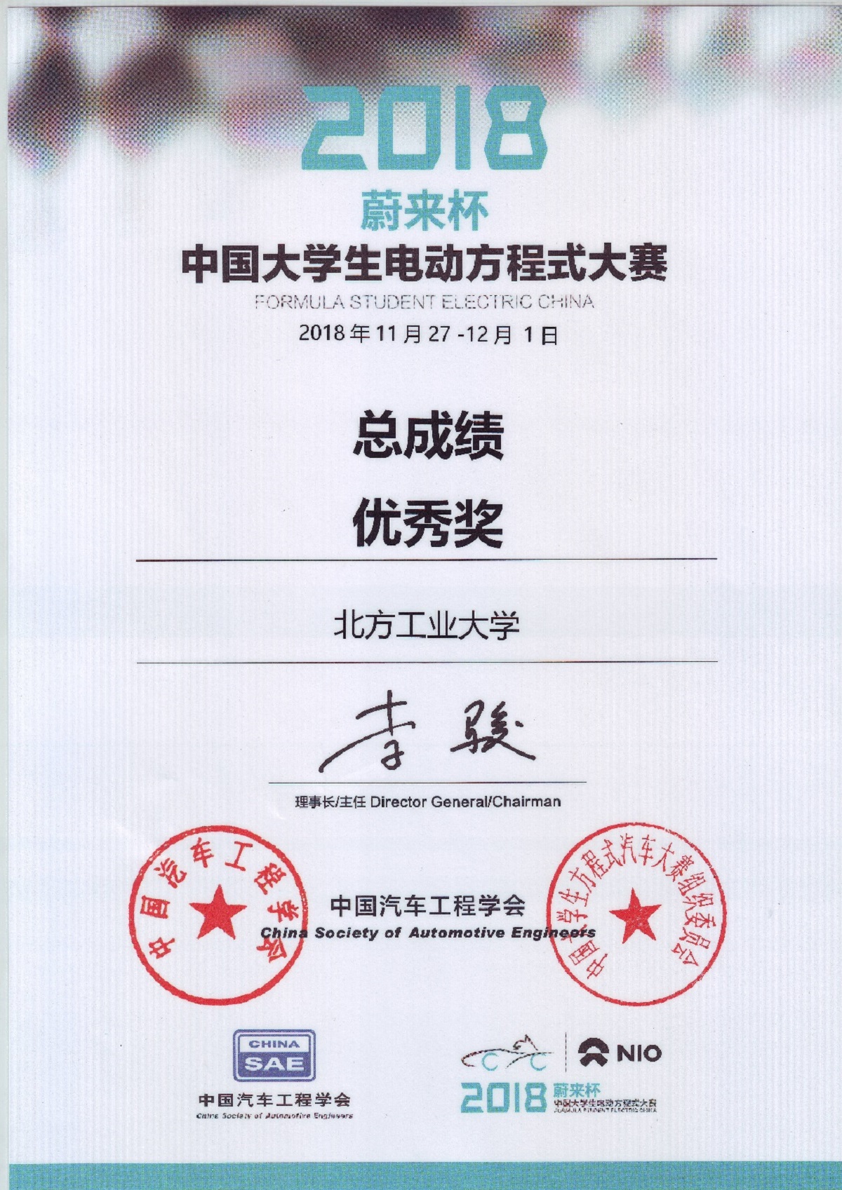 “蔚来杯中国老员工电动方程式大赛(FSEC)”是由中国汽车工程学会(SAE China)发起主办的一项由高等院校在校员工组队参加的汽车设计与制造比赛。各参赛车队需按照赛事规则和赛车制造标准,在一年的时间内自行设计和制造出一辆在加速、制动、操控性等方面具有优异表现的小型单人座方程式赛车。大赛自2015年起至今已连续举办四届,参赛高校数量和员工规模不断增加,影响日益扩大。2018年,电动方程式大赛报名参赛车队有53支,共989人报名参加,到场观摩队员一千余人,涵盖英国巴斯大学、香港理工大学、清华大学、同济大学、北京理工大学等。