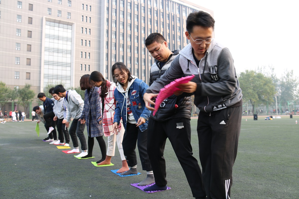 下午全体成员分为10个小组进行了素质拓展活动,小组成员各显身手、团结一致完成了“信息传递”、“爱的抱抱”、“同舟共济”等项目,通过这些趣味游戏,同学们之间不仅增强了友谊,更意识到了团队精神的重要性。