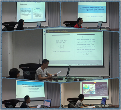 研究生冯泽瑾、梁乐乐、孙鑫、柯浩然、王凤强、刁奇、刘文娟分别针对自己的论文,精心准备PPT,做了精彩的学术报告。报告对复杂系统在建模、性能分析、优化控制、算法等方面提出新的研究途径和理论依据,特别是拓宽了数据驱动方法的应用范围,同时也为环保自动化等实际工程领域研究奠定基础,具有重要的理论意义和实际应用价值。
