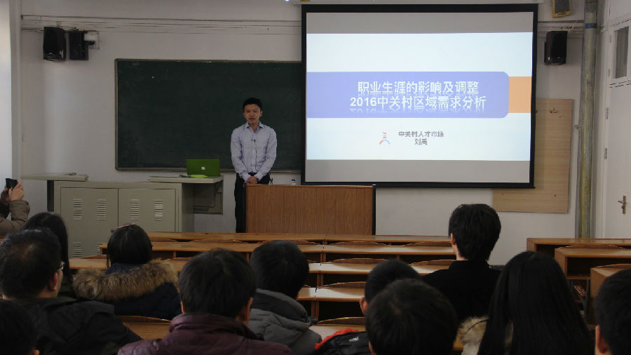 刘禹主任在报告中强调了职业规划的重要性,分析了情绪、心态等对就业的影响,对2016年就业趋势进行了详细介绍,并对求职面试中的问题进行了解析,最后和现场的同学们分享了宝贵的经验。
