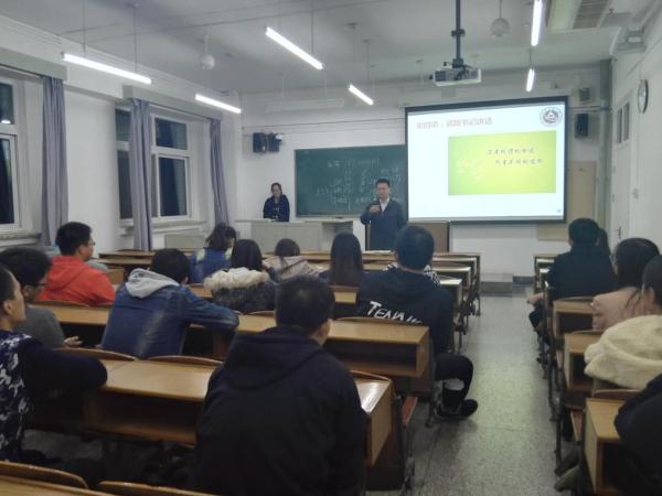 班会由团支部书记刘媛媛主持。首先由学长李达、马斌以及学姐赵萌分享了自己在大学阶段的学习经历以及保研和考研准备工作,特别提到了老员工活收获的不仅是知识,更多的是为人处世的交流能力,以及保持良好的心态最重要。随后班导师刘蕾以学姐的身份跟大家讲述了自己的考研经历,着重讲述了考研所包含的四个科目:数学,英语,政治,专业课如何复习,如何提高自身的综合素质以应对考研复试和就业面试。本班员工代表韩雪薇、姜力、张明月、姜午阳和李智浩也分别就自己对未来“就业,考研,出国”的选择情况陈述了自己的观点,做好规划,不要给自己留下遗憾。最后由隋书记总结发言,他指出在异常关键而又极易导致同学迷茫的大三时期,应该多多与学长学姐交流,或访问高年级同学,参考他人的未来规划,逐渐确立好自己的方向目标;并提出考研是一种高形态的就业,唯有拥有过硬的综合素质和突出的特点,方可考上理想的公司,铺好未来的道路;也鼓励对未来还存有迷茫的同学尽快确定目标,并为之努力奋斗。