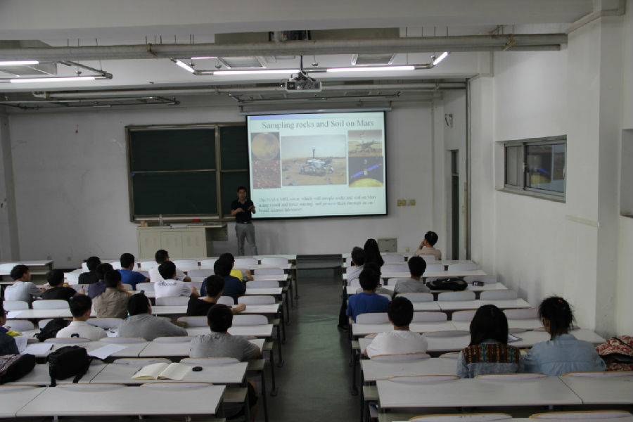 王颖副教授针对智能机器人的发展方向、趋势、相关前沿技术展开了详细的介绍,尤其对机器人在国内外的研究现状进行了深入的讲解和分析,并与同学们进行了互动。