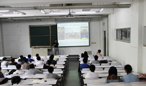王颖副教授介绍了智能机器人的发展方向、趋势、相关前沿技术,尤其是对机器人在国内外的研究现状进行了深入讲解和分析,并与同学们进行了交流。