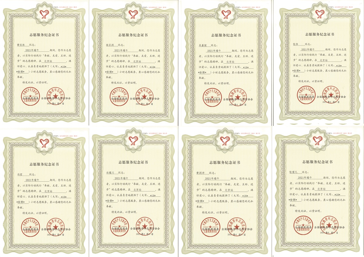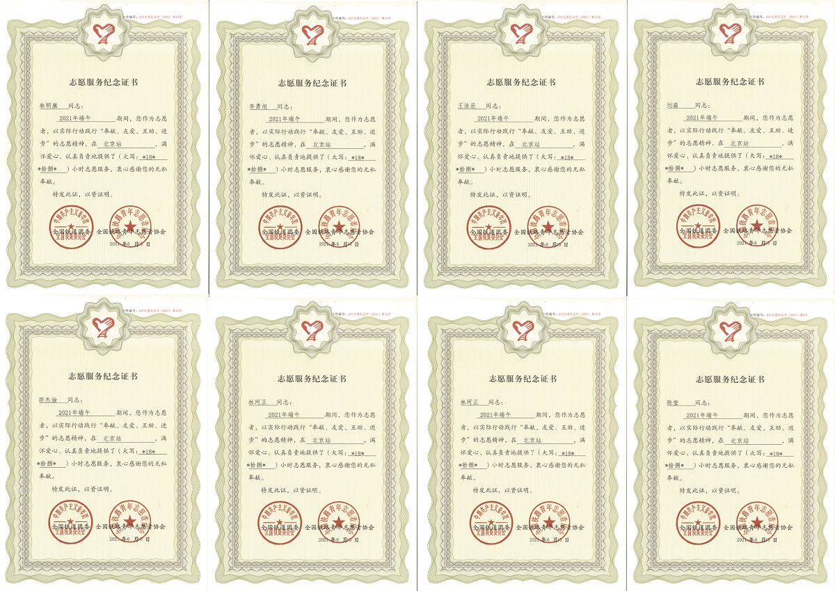 近日,yl88858永利集团林明康等16名员工获全国铁道团委和全国铁路青年志愿者协会颁发的志愿服务纪念证书。