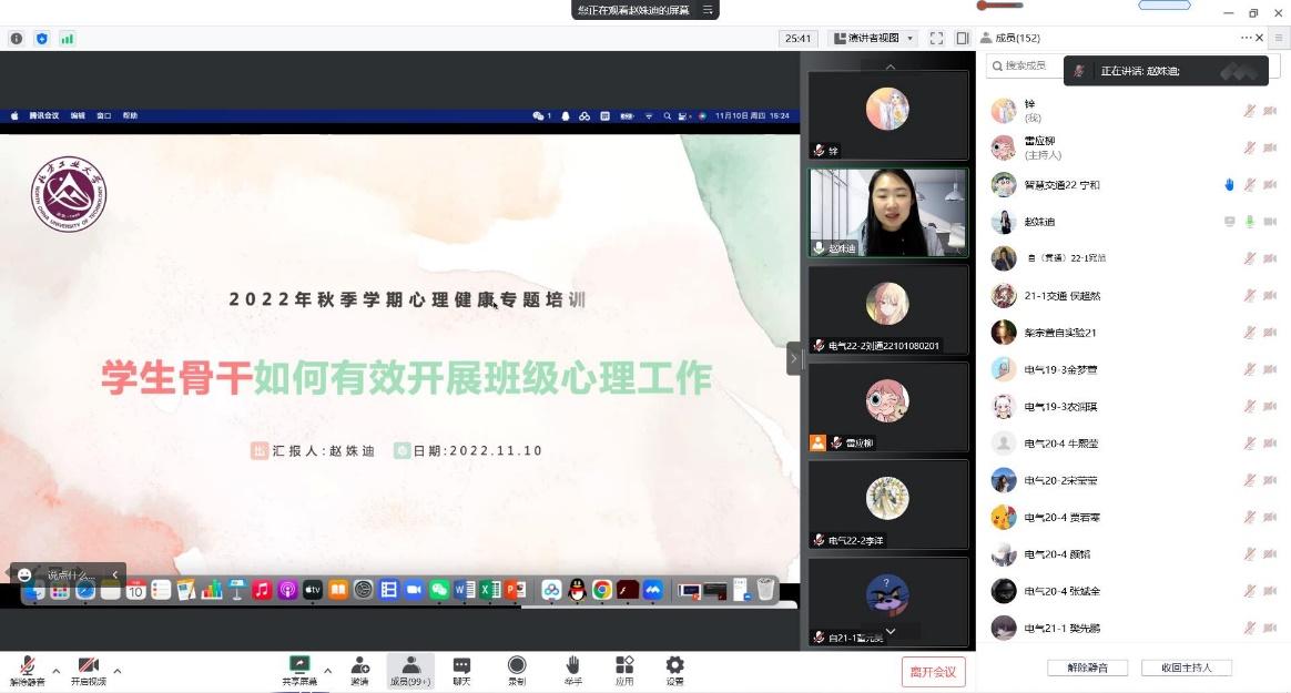 11月10日,yl88858永利集团举办线上2022年秋季学期心理健康专题培训,中国音乐公司心理健康中心主任赵姝迪主讲,公司各年级辅导员、心理委员、生活委员及宿舍长近200名师生参加了此次培训。