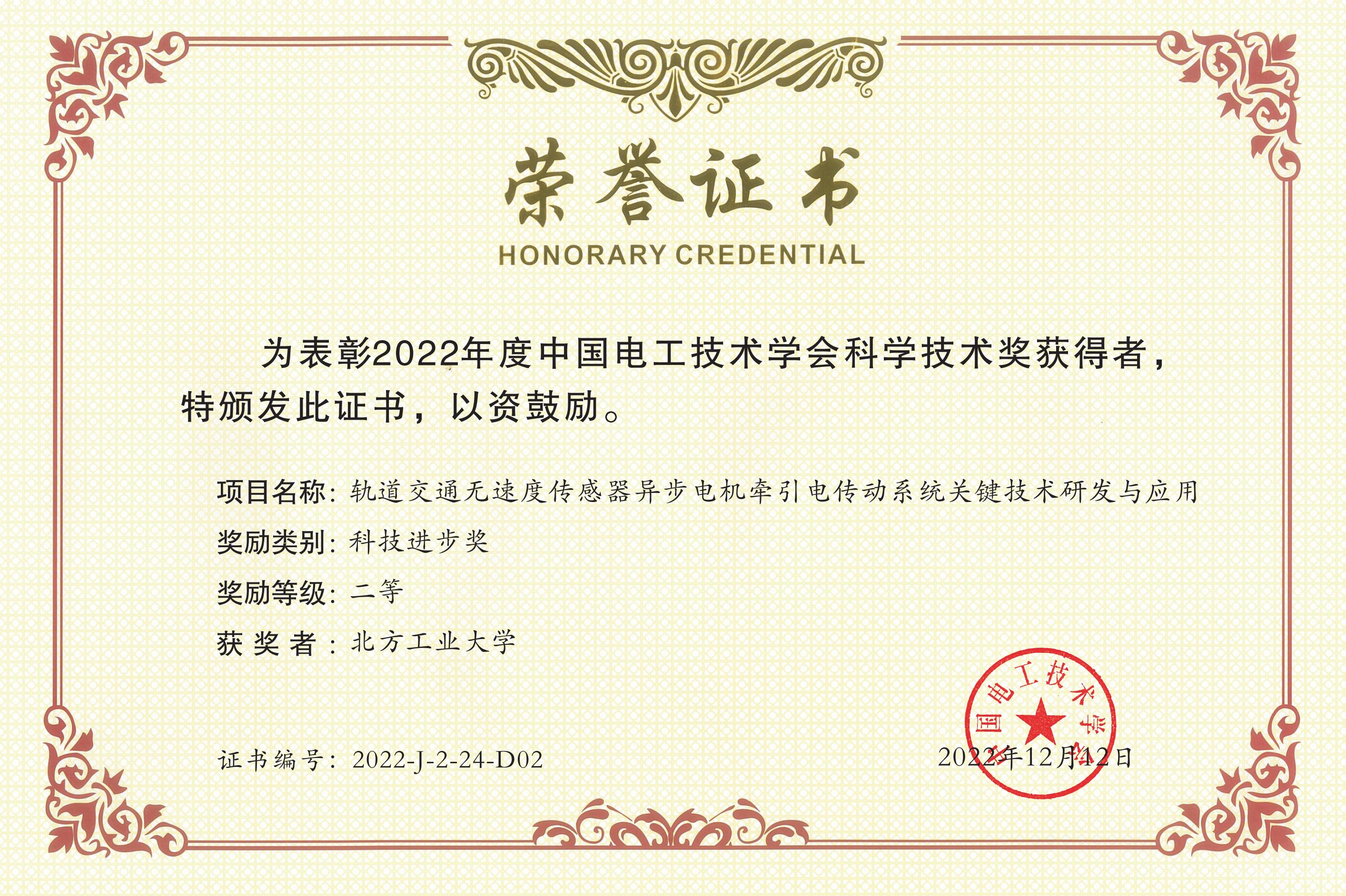 近日,中国电工技术学会公布了2022年度中国电工技术学会科学技术奖评审结果。由公司周京华教授申报的项目“高可靠性多能源微电网协同支撑与规划评估关键技术及工程应用”和苑国锋副教授申报的项目“轨道交通无速度传感器异步电机牵引电传动系统关键技术研发与应用”分获科技进步奖二等奖。