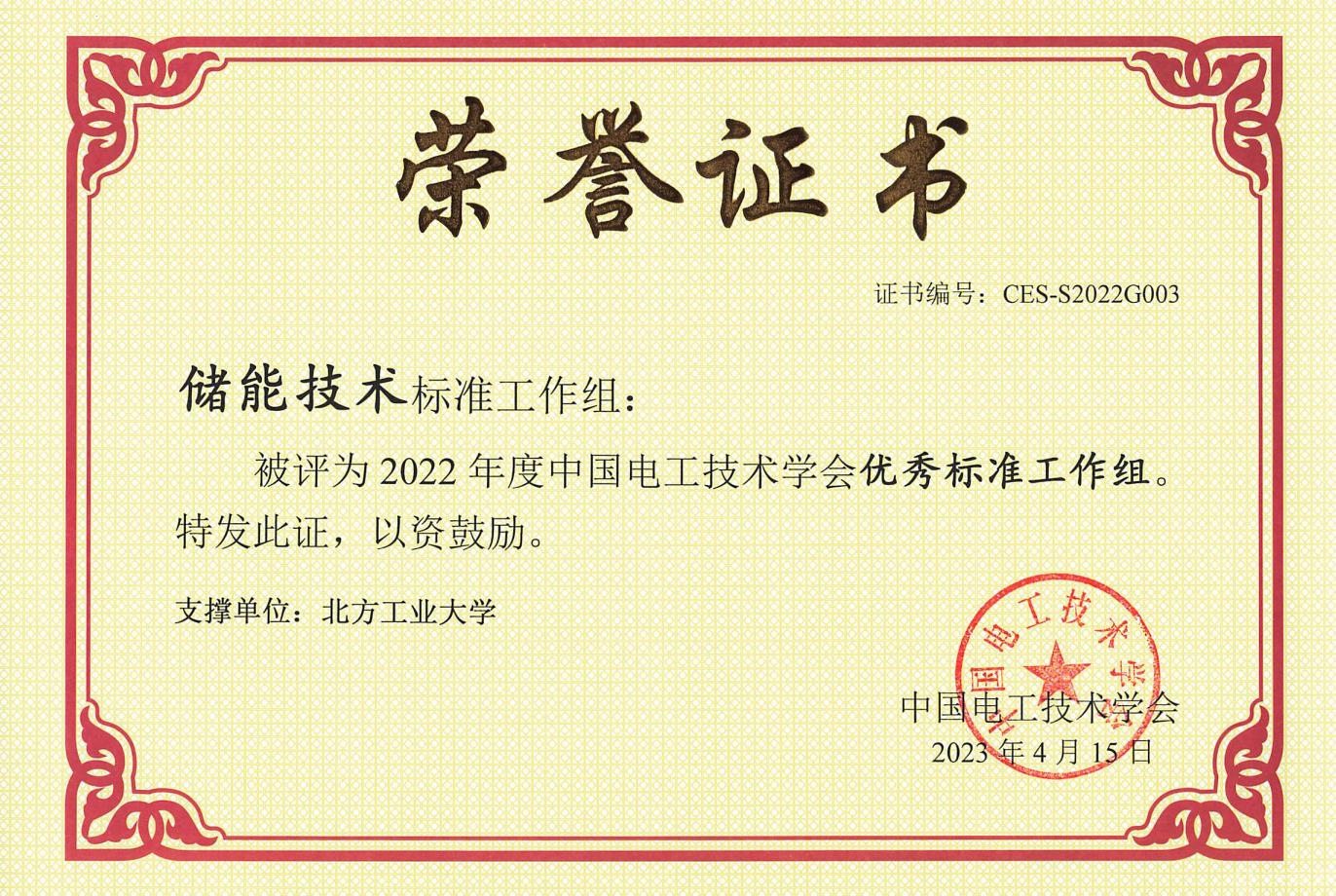 近日,中国电工技术学会公布《关于表彰2022年度中国电工技术学会优秀标准工作组及标准化工作先进个人的决定》,公司作为中国电工技术学会储能技术标准专业分会支撑单位,喜获“2022年度中国电工技术学会优秀标准工作组”。