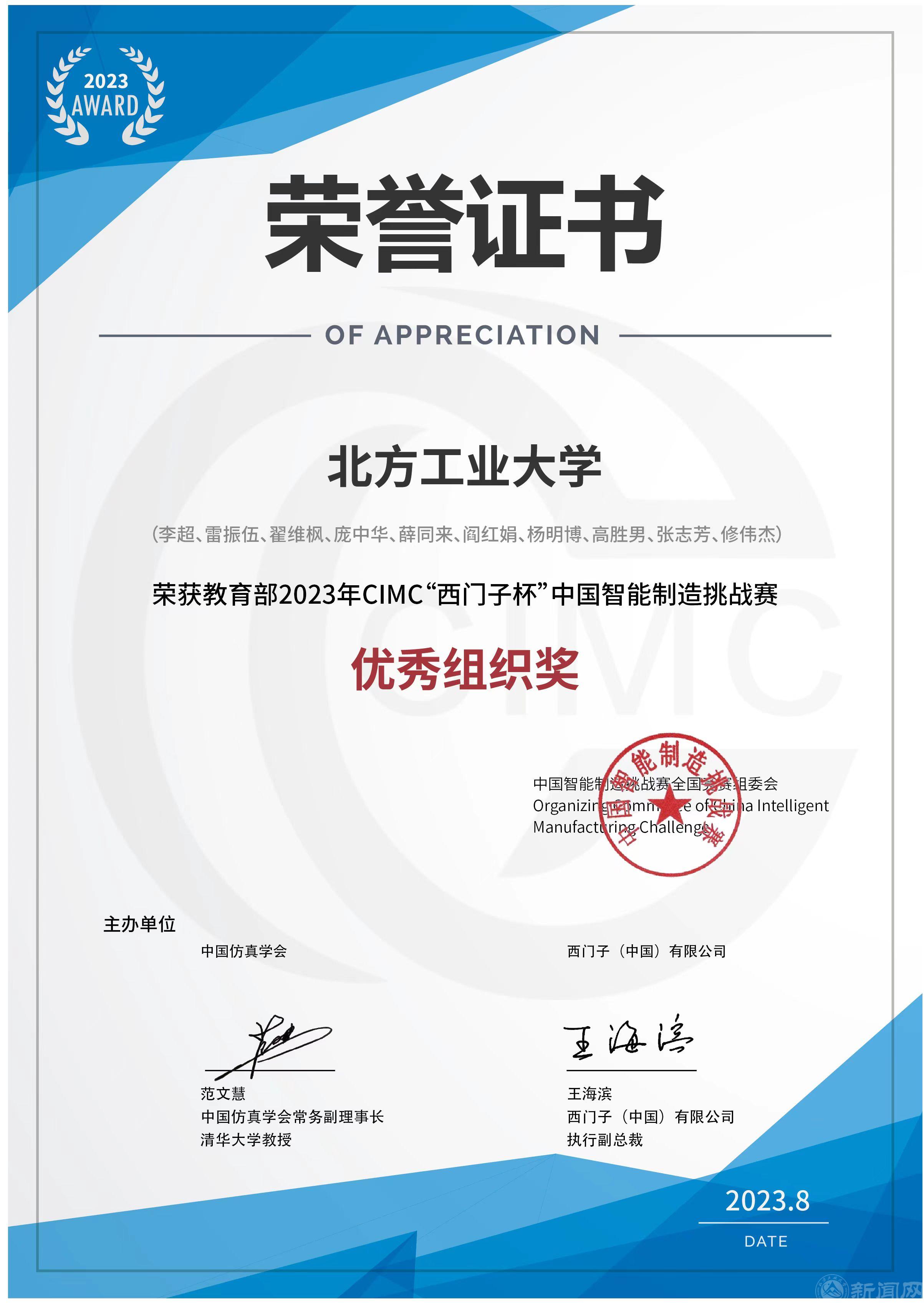 8月11日至15日,教育部第十七届“西门子杯”中国智能制造挑战赛全国总决赛在兰州理工大学进行。来自浙江大学、哈尔滨工业大学、永利集团等243所高校的523支参赛队参加了总决赛9个赛项的角逐。由公司yl88858永利集团李超、翟维枫、庞中华老师指导的“NCUT探月”队获信息化网络化赛项国家一等奖,“NCUT云影清松”队获智能产线与协作机器人赛项国家二等奖。李超、翟维枫2位老师获评2023年度优秀指导教师。