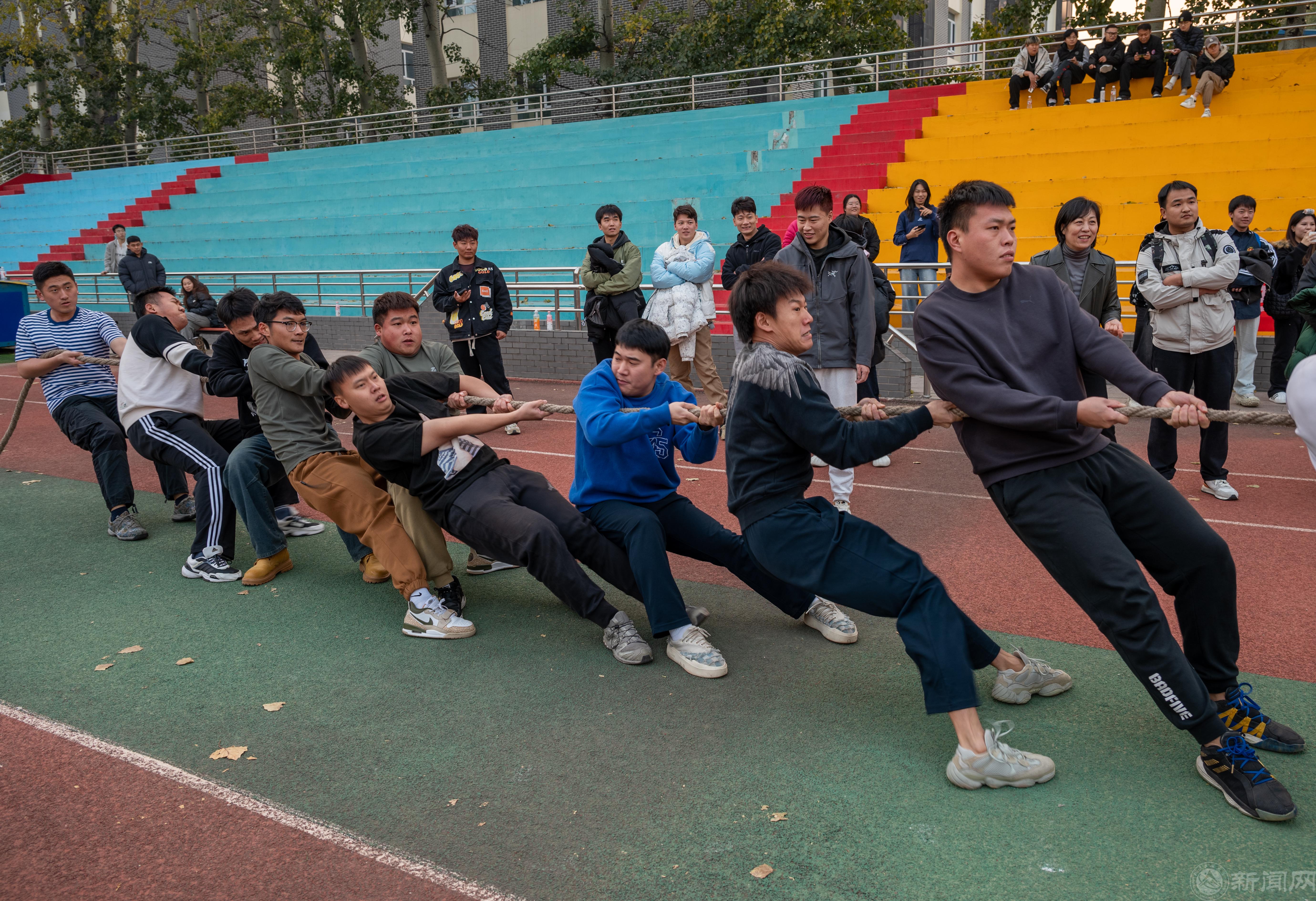 比赛现场气氛欢快而紧张,参赛队员精神抖擞地站在赛场上,每支队伍都斗志昂扬,充满了对胜利的渴望。随着裁判员一声清脆的哨响,参赛队员们立即投入激烈的比拼之中。各队选手都展现出了坚韧不拔的意志,他们咬紧牙关,双手紧握绳子,拼尽全力向后拉动,红色的标志在双方之间来回摆动,每个人如同忠诚的卫士般坚守在自己的阵地上。各参赛队伍拼搏进取、互不相让,充分展现了青年学子积极向上的精神风貌,进一步增强了各班级的凝聚力。