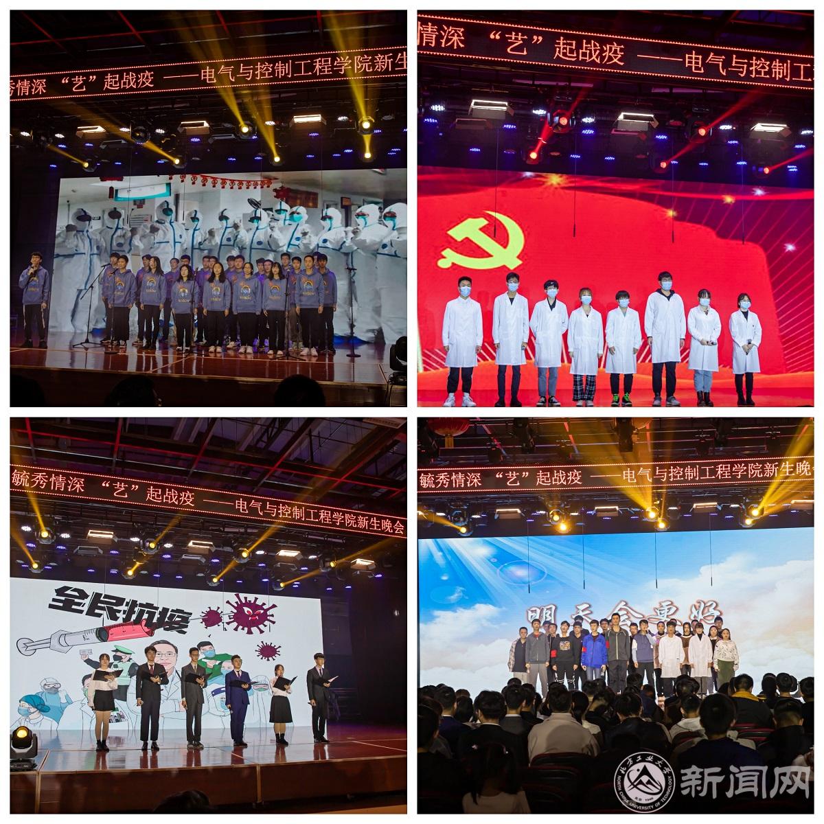 晚会分为“同心战疫”、“脱贫攻坚”和“抗美援朝”三个篇章。在电气18-3班康靖悦和电气20-3班张森淼二人合唱《将故事写成我们》的歌声下,晚会拉开帷幕。