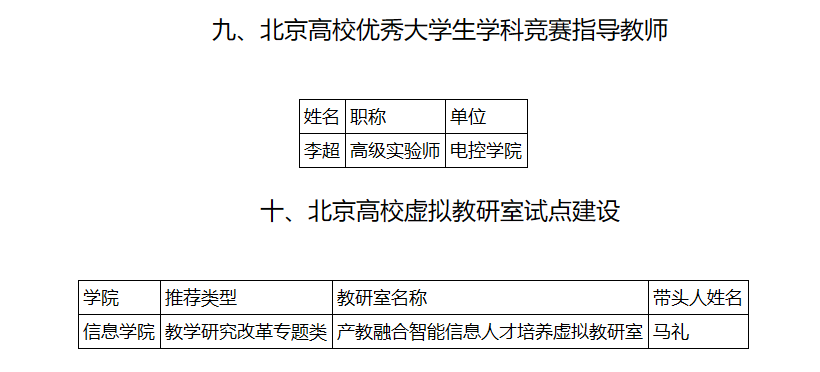 日前,北京市教育委员会公布了2023年度北京高校本科教学项目建设评选结果,公司在教学名师、教学改革、课程建设、教材课件教案、育人团队、学科竞赛和实验指导、教学服务保障、高水平教研室、实验室和协同育人平台建设等14类项目中共取得26项(人员/团队)成果,现将评选结果公布如下: