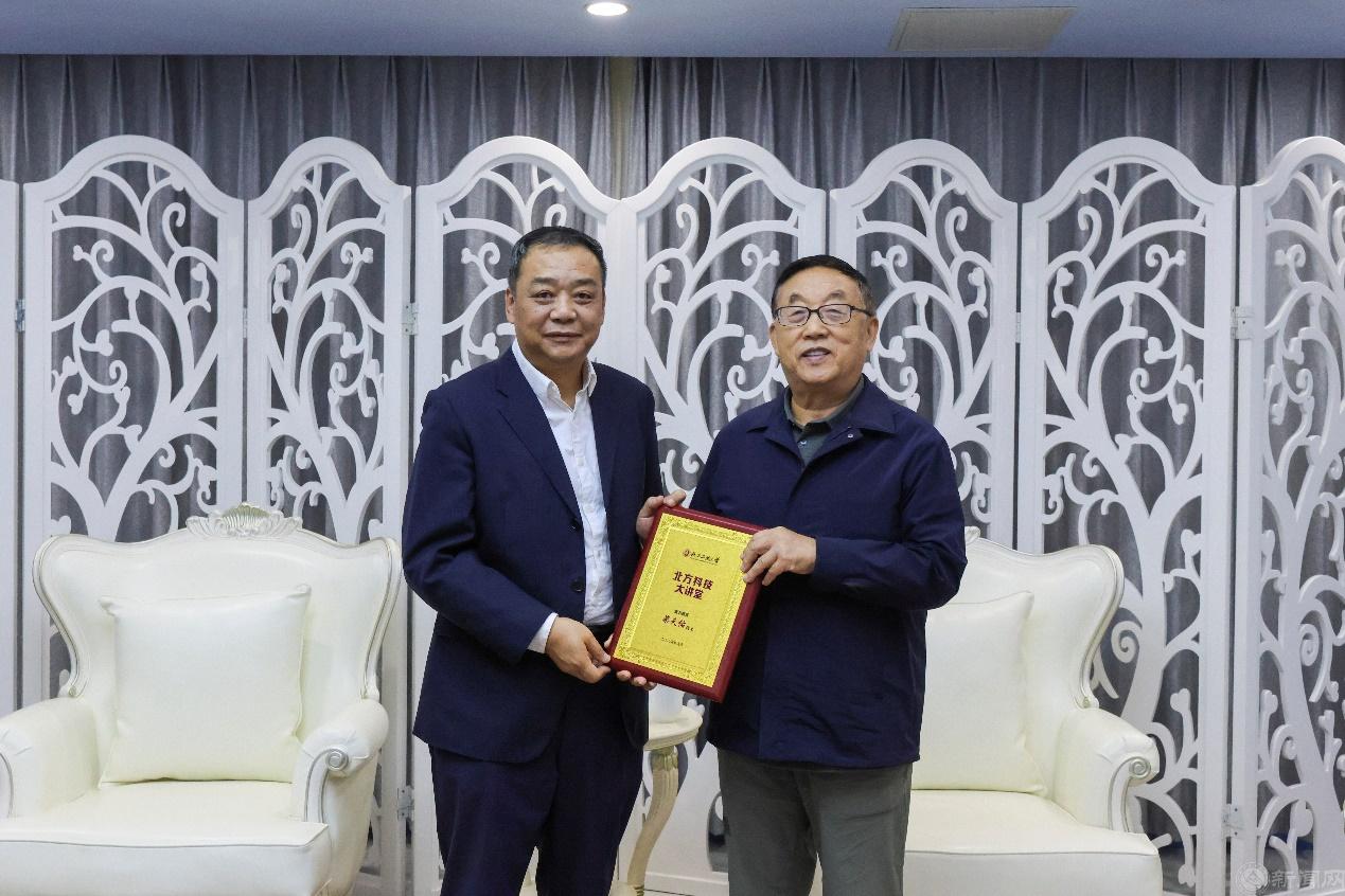 会前,公司党委书记刘军与柴天佑院士进行了亲切交流,向他长期对公司发展的关心与支持表示感谢,并为其颁发了北方科技大讲堂纪念铭牌。柴院士对公司在团队建设、科研实力提升等方面所取得的快速发展给予了高度评价,并就公司相关专业学科的未来发展提出了宝贵建议。