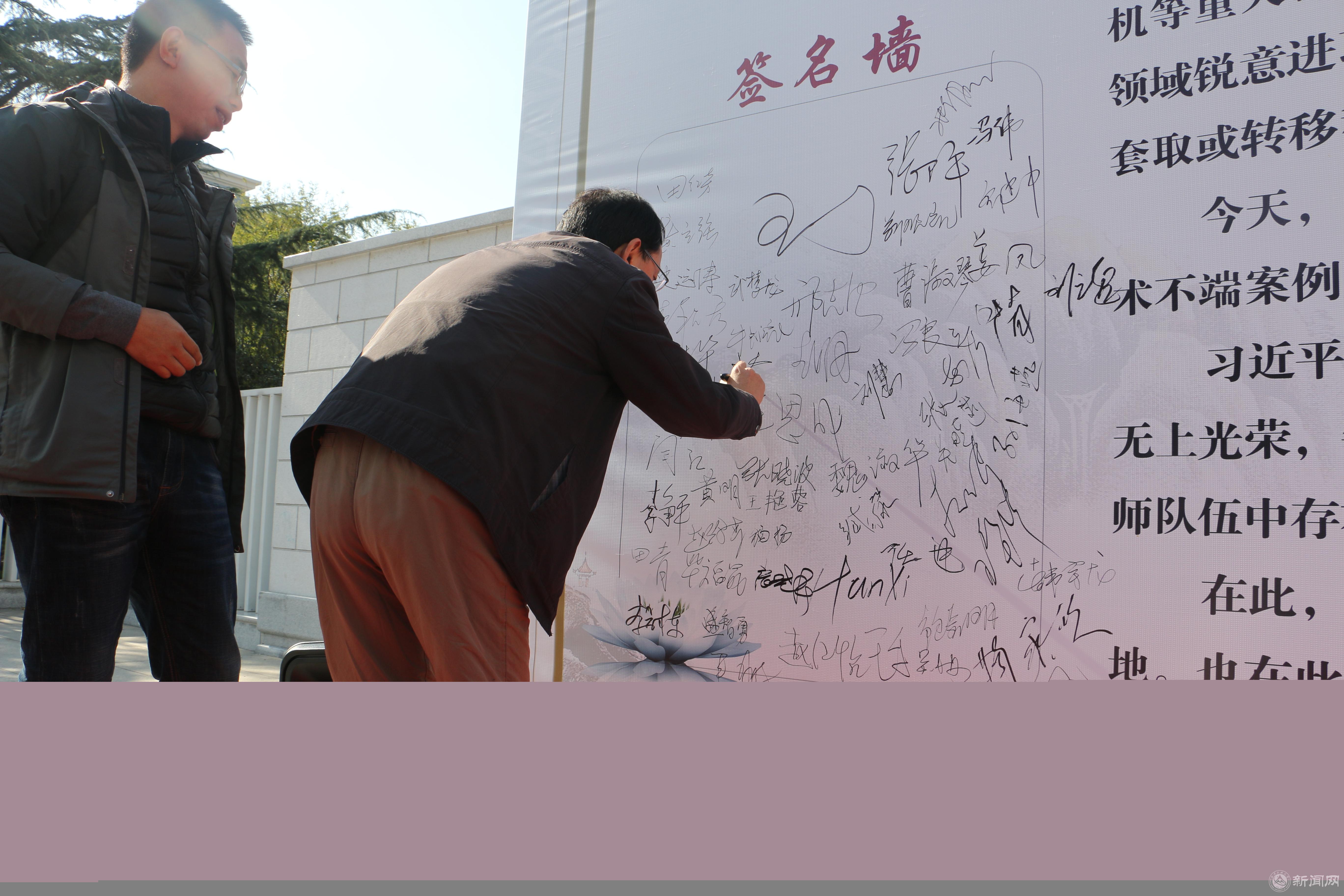 现场教师共同表态“抵制科研腐败,专心学术,以身作则,两袖清风,共同构建清廉、透明的科研空间”,并在签名板上郑重签字。员工党员、入党积极分子作为讲解员为大家详细讲解典型的科研腐败、学术不端案例。
