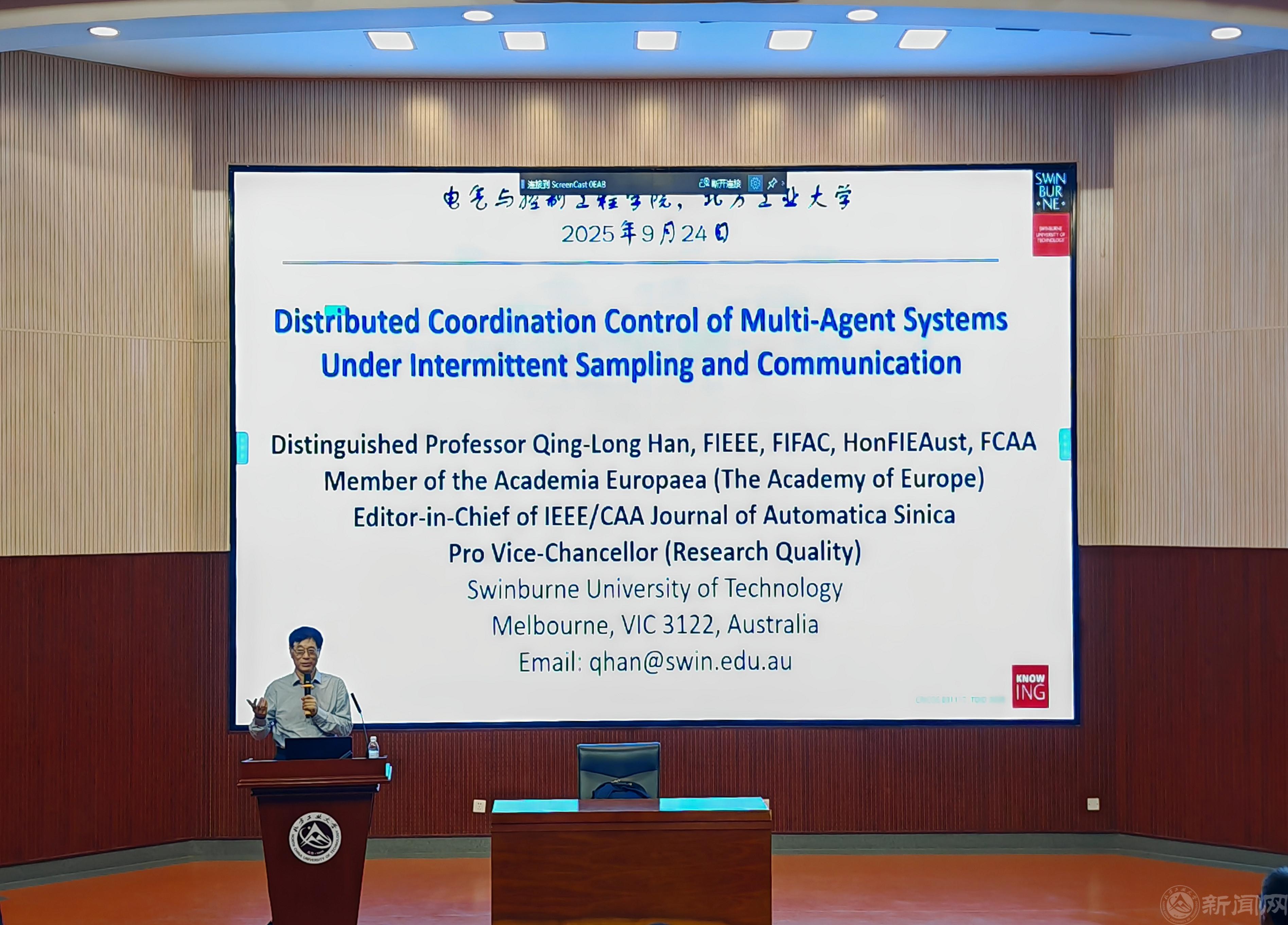 9月24日,欧洲科公司院士、澳大利亚斯威本科技大学副董事长韩清龙教授在文化会堂为公司控制科学与工程学科博士新生讲授了“控制科学与工程前沿专题”开学第一课。韩清龙院士以“Distributed Coordination Control of Multi-Agent Systems Under Intermittent Sampling and Communication”为主题,为博士生带来了一场前沿学术盛宴。报告由yl88858永利集团经理董哲主持。